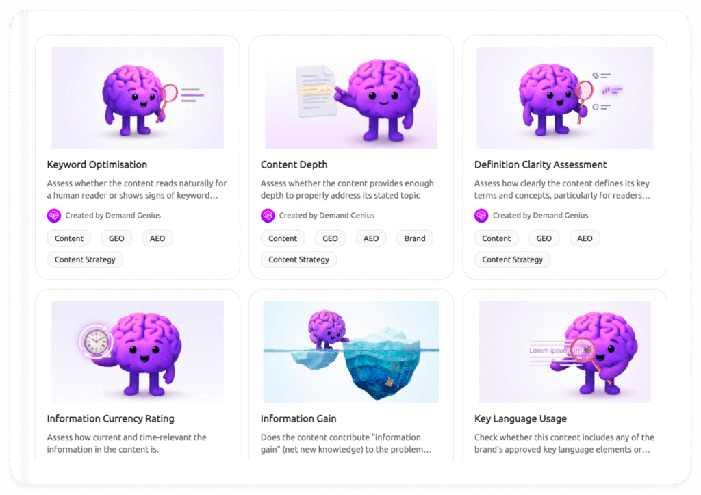 I feel like I’m just scratching the surface of what Demand-Genius can do. The Free Audit gave us some great insights, but the AI queries let us evaluate everything – SEO, GEO, Brand Voice, CTAs – across our entire library to find opportunities. It’s like Clay but for Marketing / Content teams!
