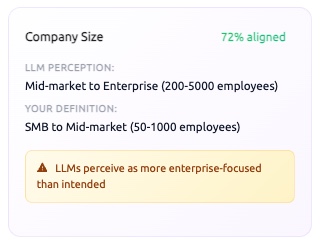 Track how AI sees your brand’s fit for different industries, segments and use cases so you can align it with the truth.