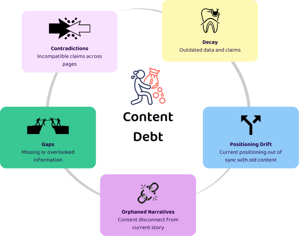 We’ve developed a framework for identifying the different forms of narrative debt that can hold back AI search performance. Generally, there’s five categories: