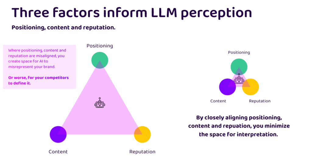 Winning in AI Search isn’t about maximising output or optimising content for specific prompt clusters – it’s about aligning positioning, content and reputation as closely as possible to communicate who you are and who you’re for with minimal margin for interpretation.